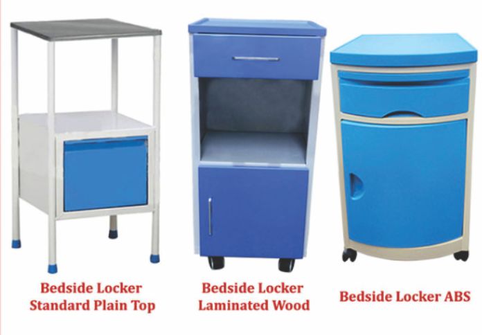 Stainless Steel plain top. It comes with cupboard box for storage. Bedside Locker Standard is Pre Treated Epoxy Powder Coated. Product Size : 40 L x40 W x 82 H cms.