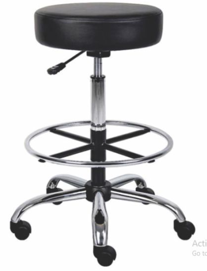 Frame is made of Round Tube. The body section is mounted on 5 legs fitted with 5cms castors. The height of the stool is adjustable with Pneumatic Gas Spring.